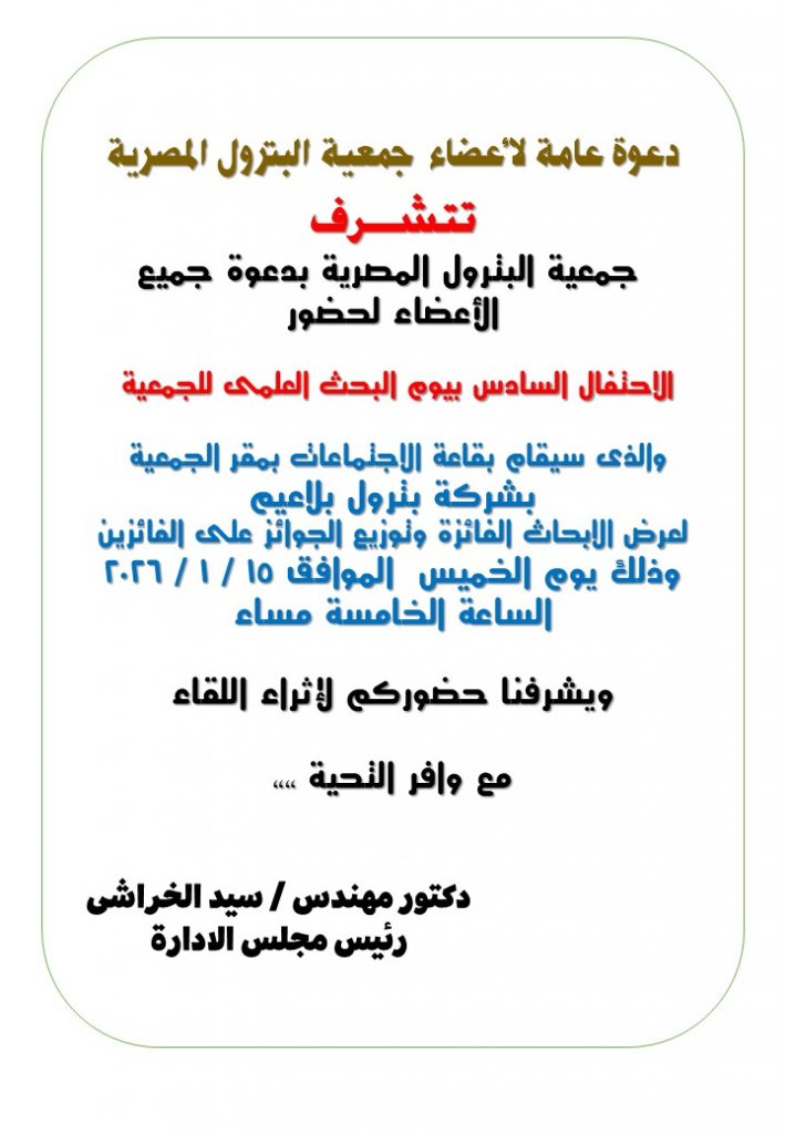 دعوة عامة لأعضاء جمعية البترول المصرية